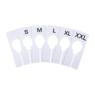 Keep your retail apparel store tidy with wholesale oblong size dividers! These plastic size dividers provide a guiding system for employees sort and hang clothing while helping customers find their size. Created to fit round or dimensional hangrails, they clip on with ease and maneuver without difficulty. We carry a selection of retail oblong size dividers, including: Generic Assortment, Women’s Assortment, Men’s Assortment and Infant / Toddler assortment so no what type of apparel you carry, we have exactly what you need! Or if you prefer select our blank rectangle size dividers or our numeric oblong size dividers. And don’t forget to stock up on shopping bags and clothing racks as well, all from Store Supply Warehouse.